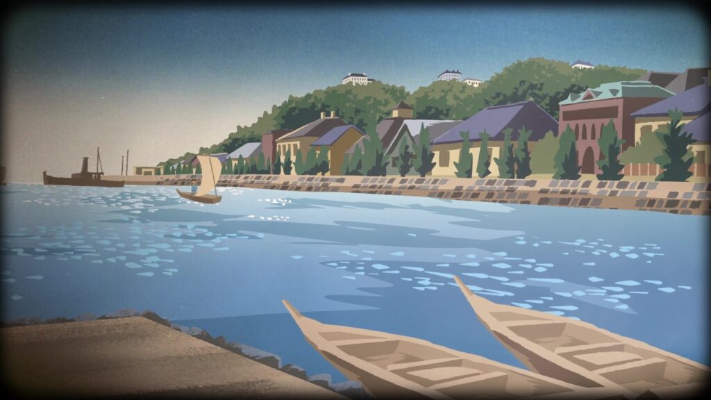 このお話は、神奈川県横浜市中区に伝わる海の民話です。横浜港開港時の居留地では、教会やこどものいえ、靴屋をはじめ、西洋の様々な文化が入り込み、外国との文化的な交流拠点になっていました。港に目を向けると、灯台の設置や欧米型の船舶への変化、航海術の進化、そのキーマンたちを受け入れるための居留地の進化などが、お話の隅々にちりばめられています。また、子どもたちが外国の方に引き取られ海を渡ることは、全国の居留地で記録が残っており、この物語はそのエピソードを伝える象徴的なお話とも言えます。