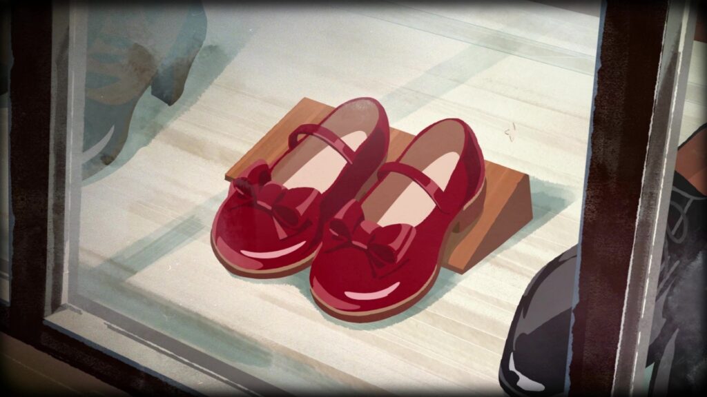 横浜・フランス山のふもと、小さな靴屋のショーウインドウに飾られた赤い靴を、少女雪子は毎日見つめていた。評判の靴はやがてお金持ちの家に渡るが、ほどなく戻ってくる。事情を知った職人修造はその靴を磨き、クリスマスの夜に雪子へ贈ったというが、新しい年に彼女が踏み出した先は……