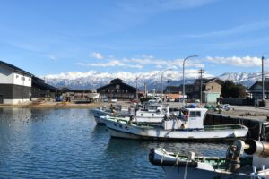 富山県北東部に位置し、北は日本海、東は長野県の県境に面しています。北アルプスの山々から富山湾まで約3000メートルの標高差があり、その大きな高低差のある市内を黒部川や布施川などの河川が流れています。江戸時代には北陸道の宿場町として栄えたほか、黒部川流域で新田開発が進み、稲作が盛んに行われました。