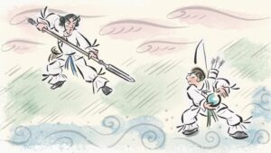 このお話は、宮崎県宮崎市に伝わる海の民話です。このお話を語り継いでいる青島神社は、海幸・山幸の神話で知られるヒコホホデミノミコトを祭神としていて、縁結びや航海・交通安全の神として信仰されています。漁で使う釣り針や漁網を、岩や貝などに引っかけたまま放置したりすると、海の生き物を苦しめてしまうことにも繋がりかねません。海の恵みを受け取る代わりに、生き物たちを守ることの大切さをこの物語は伝えています。また、山の恵みも海の恵みも私たちにはかけがえのないもので、争い奪い合うのではなく共存共栄の道を探していくことが大切であることも学ぶことができます。