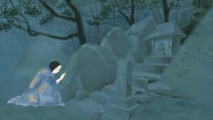 このお話は、鹿児島県日置市に伝わる海の民話です。江戸時代、遠見番山には外国船を監視するための番所があり、密航船を発見した際は、のろしを上げて鹿児島の藩庁に報告していました。遠見番山から見渡せる吹上浜は、南北約47kmにわたる国内最大級の砂丘で、アカウミガメの産卵地としても知られます。夏から秋は台風の襲来も多く、冬は西から北西の季節風で波が荒れることもあり、漁業だけでなく海水浴場などでの身近なレジャーでも注意が必要です。民話を通じて海への畏れを今一度思い出し、美しい海の自然を守っていくことの大切さを学ぶことができます。
