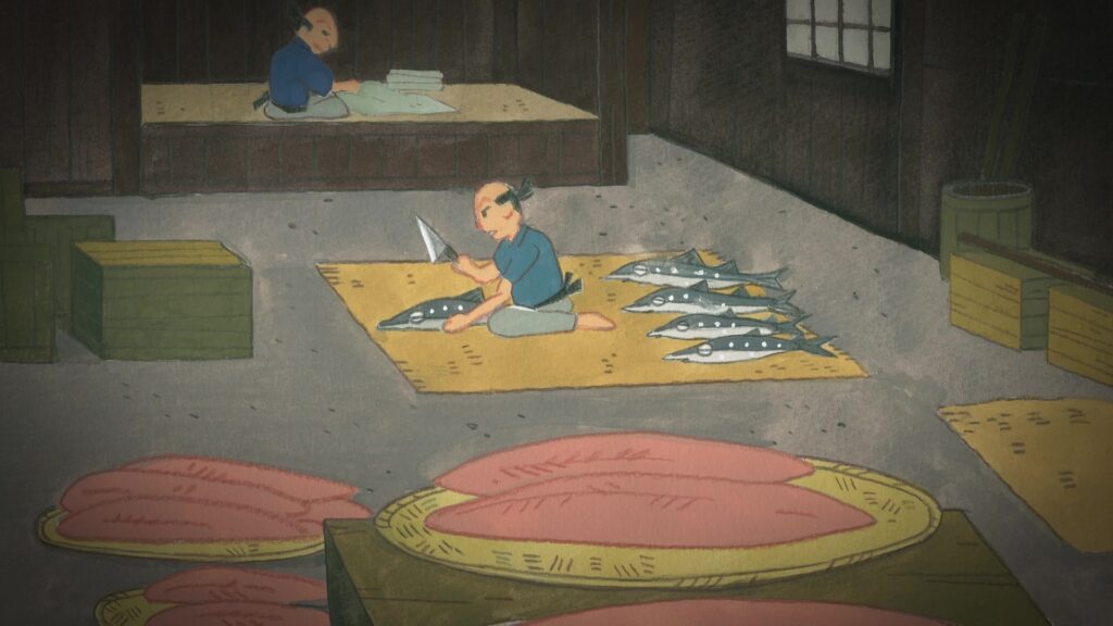 このお話は、栃木県那須塩原市に伝わる海の民話です。かつては水量の多かった蛇尾川ですが、いまは大雨の時以外ほとんど水が流れません。山から流れ出た水が平野部に出る際に地下に潜ってしまうのです。蛇尾川の水は、大田原方面で地表に出て、箒川、那珂川へとつながり、やがて海へと流れていきます。川を通じて、山と海がつながり、それぞれの自然環境を守ることが地域の持続可能性を育むことを伝えています。また古くから、太平洋で水揚げされたアブラツノザメは、ムキ身にされ那須塩原まで運ばれ食されてきました。海から離れたこの地でも、海の恵みを受けてきたのです。