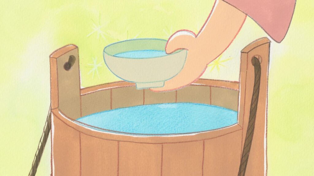 太平洋で獲れる小さなアブラツノザメは「サガンボ」と呼ばれ、行商人により内陸へ運ばれていた。山と海の文化が交わる那珂川水系の蛇尾川には、昔は橋がなく渡し人に頼るしかなかったという。ある日、弘法大師がこの地を訪れ、水を求める老婆に出会い、その苦労を知った大師が杖を突き立てると……