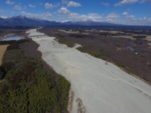 那須塩原市から大田原市周辺を流れる河川で、流れの途中で水が地表から消える「伏流河川」(水無し川)として知られています。上流では普通の川として地表を流れていますが、那須塩原市の折戸付近で砂や石の層に水がしみ込み、10km以上も地下を流れます。このため、普段は大小の石と砂が積もった河原だけが広がっていますが、大雨の際はこの河原に大量の水が流れ、見える川となります。