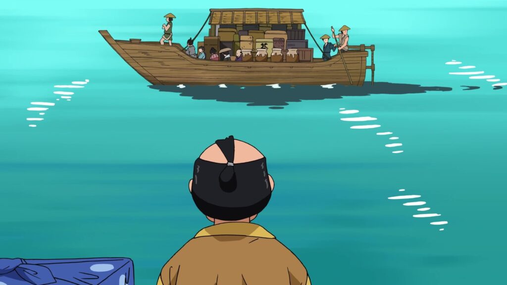 江戸から商いに訪れた若旦那は、秩父の山間「皆野」で塩を売り炭や反物を仕入れていた。舟旅の揺れにうんざりし二度と乗るまいと決意するが、豊かな川の恵みに心を惹かれ再び舟に乗り込む。穏やかな流れに安堵したのも束の間、思わぬ“困りごと”に巻き込まれ、舟の上で大騒動が起きて……