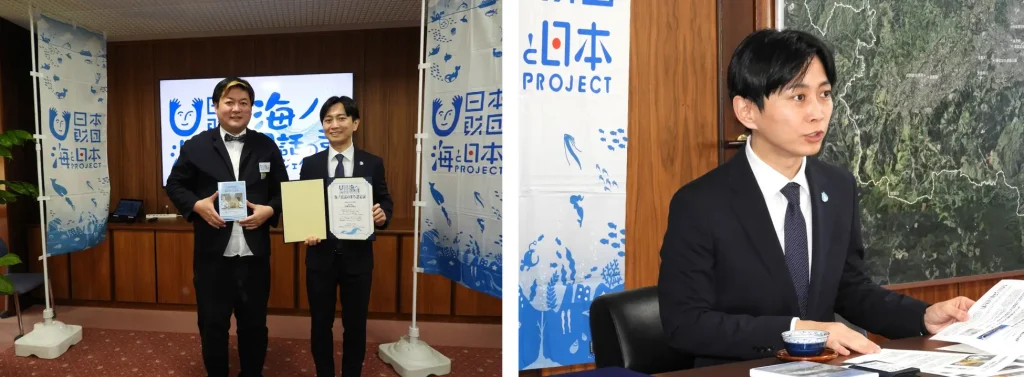 宮崎県宮崎市が舞台の海ノ民話アニメーション「海幸彦と山幸彦」が完成し、一般社団法人日本昔ばなし協会 代表理事・「海ノ民話のまちプロジェクト」アニメ監督の沼田心之介が清山知憲市長を表敬訪問し、アニメーションが披露されました。