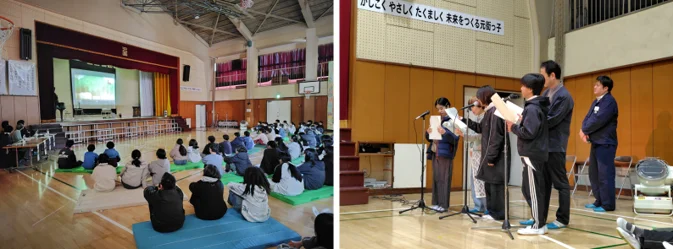 上映後の解説に登壇した口承文芸(昔話)研究者の久保華誉先生は、民話の成り立ちについて「人は面白い話を誰かに伝えたくなるもの」と語り、一人ひとりの心にある『お話の種』が誰かに伝わることで、やがてそれが民話になっていく過程を説かれました。子どもたちに向けて、身近な気になることを調べ、周囲の人の話によく耳を傾けてみてほしいという温かいメッセージが贈られました。