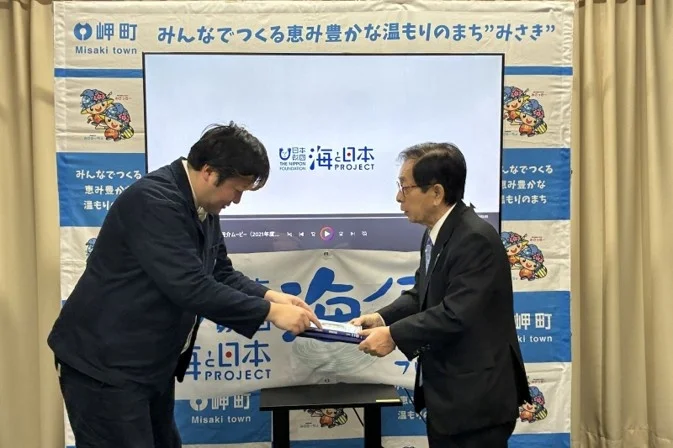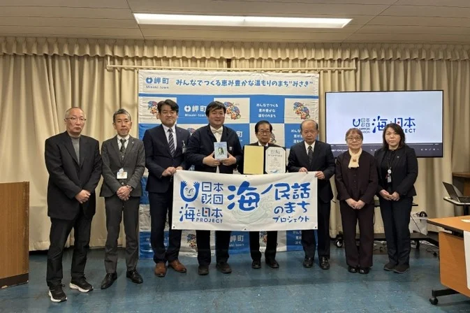 大阪府岬町が舞台の海ノ民話アニメーション「福姫伝説」が完成し、一般社団法人日本昔ばなし協会 代表理事・「海ノ民話のまちプロジェクト」アニメ監督の沼田心之介が田代堯町長を表敬訪問し、アニメーションが披露されました。