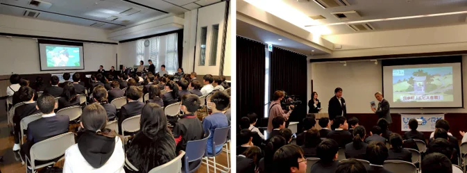 穴水小学校と向洋小学校の4・5年生(計51名)を対象としたアニメーション上映会を開催。「エビス合戦」のほか、同じ能登地方である七尾市の海ノ民話『蛸神さま』や、プロ声優によるアフレコ映像など、子どもたちの興味を惹きつける盛りだくさんの内容となりました。