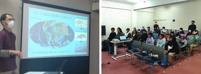 つづく、ジオパーク学芸員による解説では、地形的・環境的な視点から「なぜ室戸にクジラが訪れるのか」をレクチャー。古くから続く捕鯨の歴史とともに、室戸の人々とクジラがいかに密接に関わってきたかを、科学と歴史の両面から深く学びました。