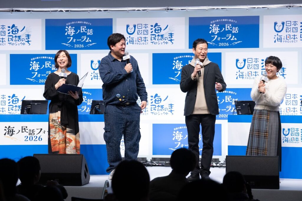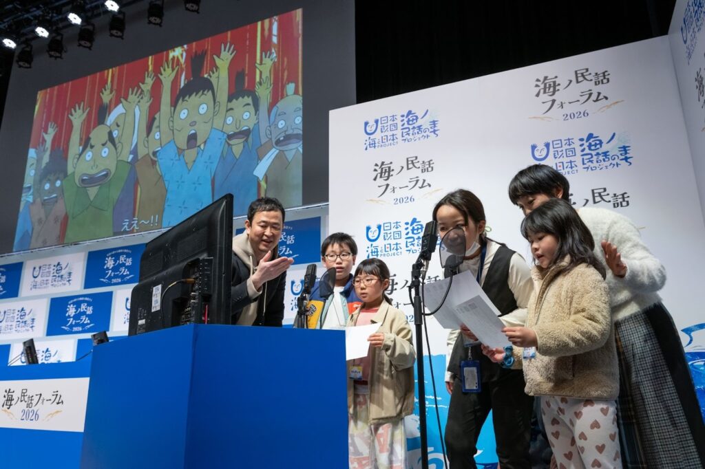 2026年3月26日、神田明神ホールで開催した「海ノ民話フォーラム2026」。最新の海ノ民話アニメーションの上映や声優とのアフレコ体験に目を輝かせる子どもたち、そして異分野の融合が盛り上がったスペシャルトークセッション。会場が一体となって「海ノ民話」の未来を描いた、熱気あふれる一日の記録を写真で振り返ります。