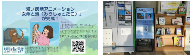 一般社団法人日本昔ばなし協会が取り組む「海ノ民話のまちプロジェクト」では、この度、長崎県平戸市を「海ノ民話のまち」として認定しました。これを受け、平戸市と海と日本プロジェクトin長崎県地域連携企画として、平戸市内各所に設置されているデジタルサイネージで、海ノ民話アニメーション「女州と蛸」の投影を実施しています。