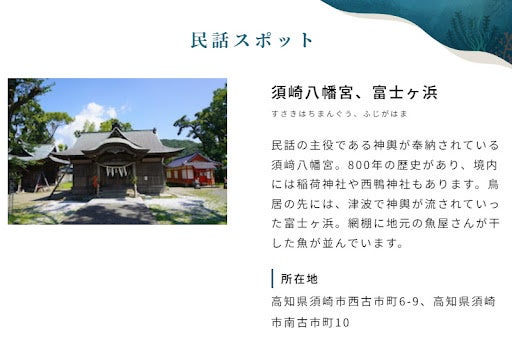 各作品に付随して「海ノ民話のふるさと紹介」のコーナーを新設。それぞれの民話が生まれた自治体の紹介や民話に登場するスポット案内を掲載しました。